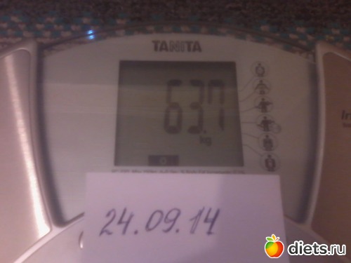 Я по-прежнему 121 паунд, это чуть меньше 55 кг... Так что я не поправилась, но и не похудела... Надеюсь к след среде будут успехи