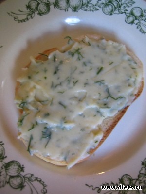 Подогреваем в кастрюльке на медленном огне, постоянно помешивая. Когда смесь начнет плавиться, добавляем соль и укроп.