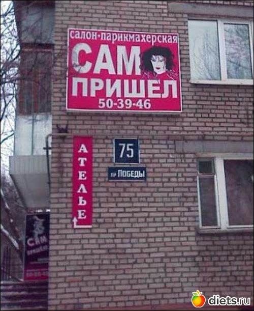 У меня опять ничего нет.Честно, хожу по городу разглядываю вывески,но ничего достойного ваших светлых умов не вижу