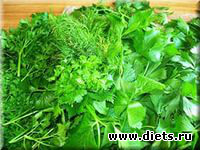 Зелень ( для посыпки) - вполне допускается ...как и 2 небольших солёных огурчика(до 10 см )