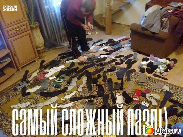 Очень просто - стираю часто,максимум 5-6 пар, поэтому пазл собирается легко