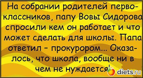 — Сынок, ты зачем всем рассказал о том, как математичка с физруком целовалась?! — Она сама об этом попросила.
