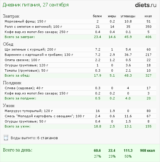 Ну и все, хорошенького понемножку, т.е. на 900 ккал.