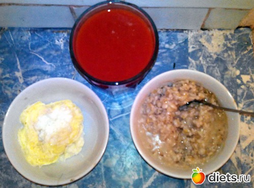 Томатный сок, овсянка и яйцо.