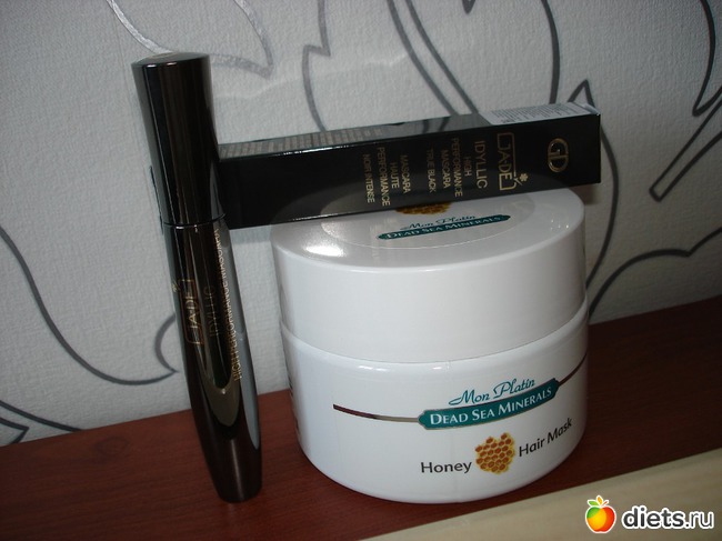Еще заказывала себе тушь и масочку для волос, маской сегодня уже пользовалась, волосы обалденные после нее, а запах какой, как закончится обязательно еще закажу
