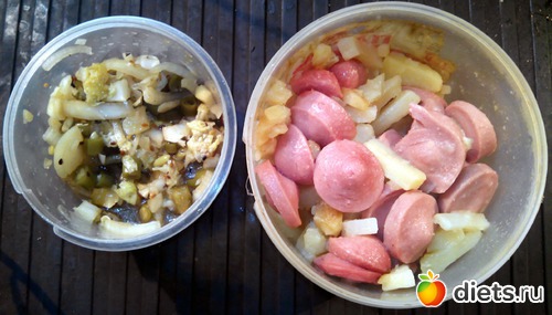 Сегодня у меня сосисочный день! И вчерашняя жареная картошка. Ну и немного капустного салата.