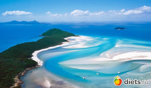 Уайтхэвен-Бич — это красивейшая 7-километровая береговая линия вдоль острова Витсандей. Всемирную известность пляж получил благодаря белоснежному песку. Его окрас обусловлен наличием чистого диоксида кремния (98 %), который придает ему такой оттенок.