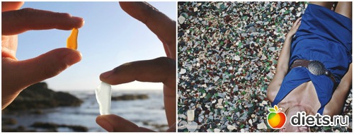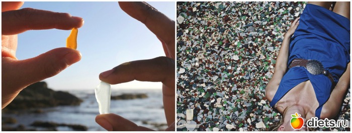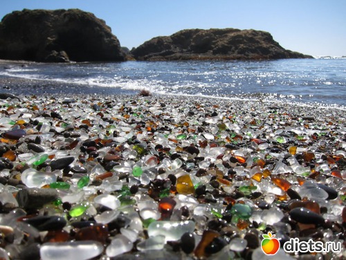Недалеко от города Форт Брэгг в Калифорнии есть интересный пляж, усыпанный разноцветными стекляшками. В начале XX века здесь была городская свалка, потом, в 1967 году власти ее закрыли и в течение многих лет проводили очистку территории. Теперь мусора здесь нет, но берег покрыт мелкими, обточенными волнами стеклянными камушками.