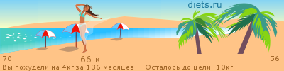 Привет! Не могу жаловаться на свою жизнь: учусь в хорошем универе, у меня замечательный молодой человек и самые лучшие родители. Единственное неудобство-это мои бока и живот, которые я упорно отращиваю на сладостях. Весила феврале 62 кг. после отдыха отъелась до 65, и за лето добила на шашлыках и сладком до 70 кг. Не хочу повторять ошибок прошлого, когда я весила 77 кг, поэтому беру себя в ежовые рукавицы, и активно сбрасываю! Стремлюсь к 56, тем более поводов похудеть предостаточно: это и выпускной, и, возможно, отдых))) так что, поехали!