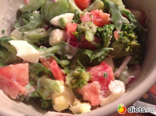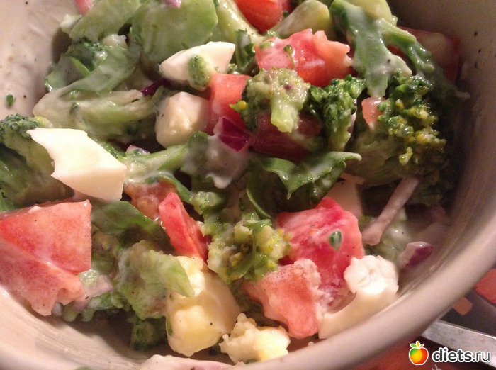 Ужин - брокколи, помидор и яйцо с заправкой обезжиренным кефиром.