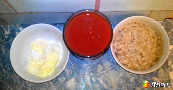 Ну, это стало классикой жанра - сок, овсянка и яйцо.