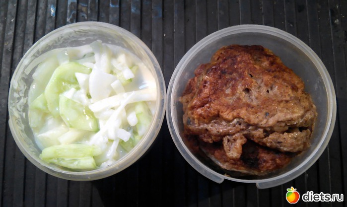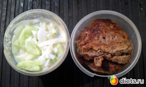 Салат из огурцов, лука и ряженки. И ячменные лепешки.