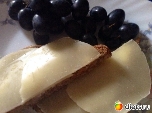 Завтрак - цельнозерновой тост с 9% сыром "Ольтерманни", виноград и кофе.