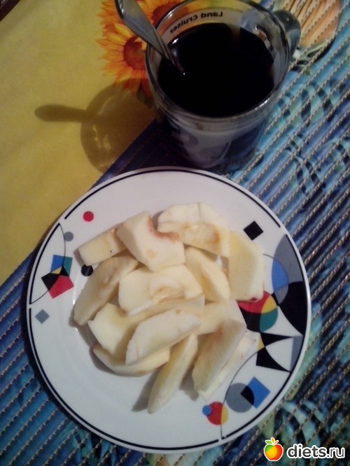 Сегодня первый день на 90 дневке. Сегодня белковый))) Встала в 7 - позавтракала в 8 - на завтрак 2 яблока))) Хоть и первый день - легко))) Эйфория еще от того что не вешу столько сколько предполагала))) До цели 14 кг - Думаю достижимо))) На фото - мой завтрак)))