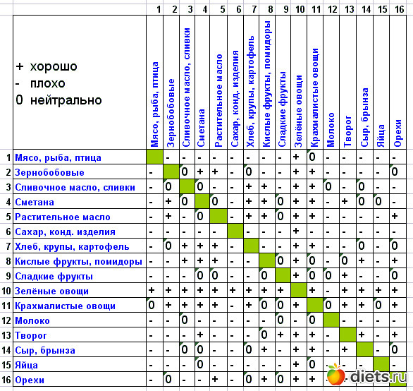 СОЧЕТАНИЕ ПРОДУКТОВ