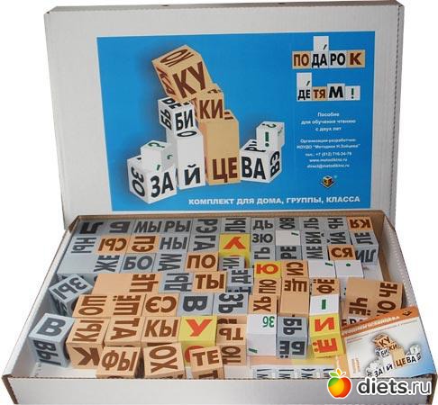 Кубики учат читать с первых занятий, составлять знакомые слова. А также учиться читать и писать (кубиками) одновременно. Но учтите, что если вы показываете буквы, слоги или склады ребенку, он может их различать, но это не совсем осмысленное чтение, которого хотят добиться родители, а узнавание, игра ребенка и взрослого. Не стоит спешить с одновременным обучением чтения и письму. Именно об этом волнуются логопеды: дело в том, что принцип усвоения двух механизмов совершенно разный. Чтение - это работа глаз, а письмо - руки. К тому же, в чтении и в письме (в устной и письменной речи) совершенно разные законы. Об этом красноречиво говорят многочисленные орфоэпические (произношение) и орфографические (правильное написание слов) словари. Речь развивается через разговор. Учитывать нужно и то, что склад - это вовсе не слог. Следовательно, в жизнь ребенка вы вводите новое понятие, должны показать его различие. Не спешите обучать ребенка чтению с года. Поверьте, пройдет совсем немного времени, и к 2,5- 3 годам он сам будет бегать за вами, спрашивать, какая буква, какое слово написано на вывеске, на номере машины и так далее. Чтение должно ложиться на подготовленную почву. Показывая буквы, кубики с полугода (что является сейчас модной тенденцией), обрекаете себя на бесконечное число повторений: ибо в этом возрасте ребенок быстрее забывает, чем выучивает ряд символов. Таким образом, на достижение того же результата (”зачитал!”) в год тратится больше усилий, чем в 3-4 года. Может, стоить поберечь силы? Чтение - процесс творческий. Ребенок “реально” читает, когда умеет уже осознанно разговаривать, шутить, комбинировать слова, уходит от простых предложений типа “баба, иди”, осваивает грамматику, построение фраз, выделяет себя из окружения, от мамы, переходит в рассказе о себе от третьего лица к единственному (не “Оля хочет”, а “я хочу”). Сама методика как раз и разработана для детей с 3-4 лет.