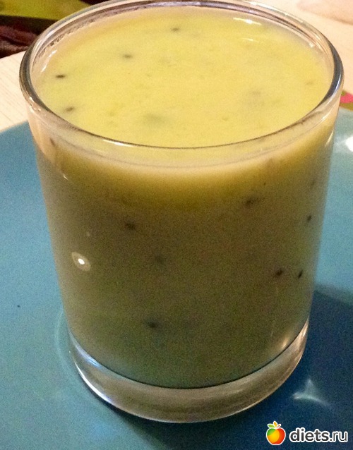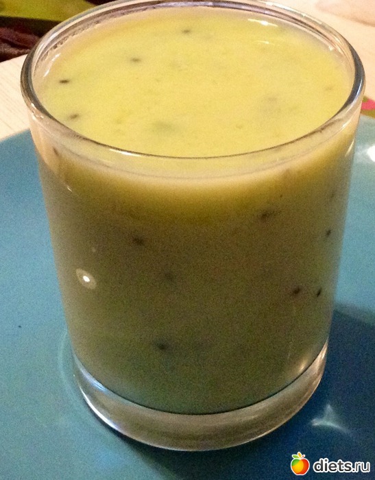 Перекус - вкуснейший коктейль из обезжиренного кефира и киви.