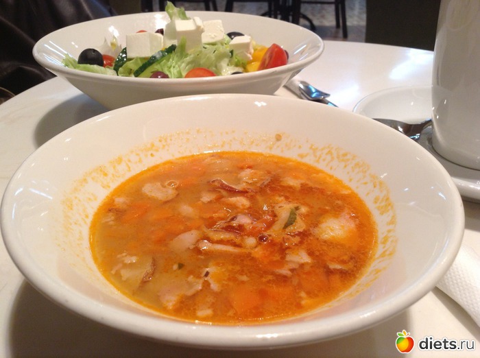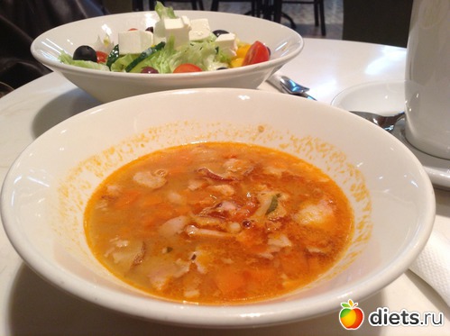 было 45 минут, пошла в "Шоколадницу". На этот раз обошлось без эклера. Только нутовый суп и греческий салат.