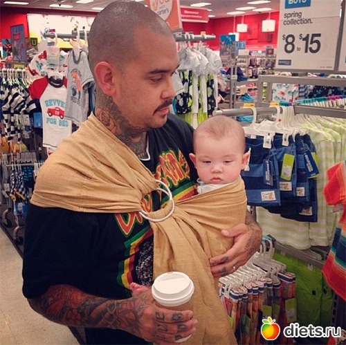 А когда ты немного подрастешь, он выучит непонятное слово «слинг» и, мастерски поместив тебя туда, отправится за покупками.