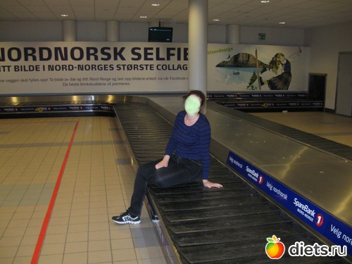 Всё, пришли мы в аэропорт. Он очень компактный, чистенький такой, даже, можно сказать - уютный. Получили полётный лист сразу на все пересадки, купили по булочке с изюмом и устроились в уголке в ожидании. То, что я спокойно отдыхаю на транспортной ленте, даёт возможность оценить количество народу в аэропорту)