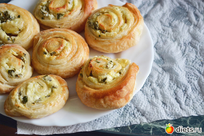 Свернуть в рулет, нарезать поперек, оставить на расстойку минут на 30. Выпекать в разогретой духовке до золотистого цвета. За несколько минут до конца приготовления можно посыпать булочки зеленью и/или натертым сыром.
