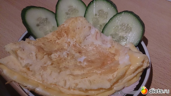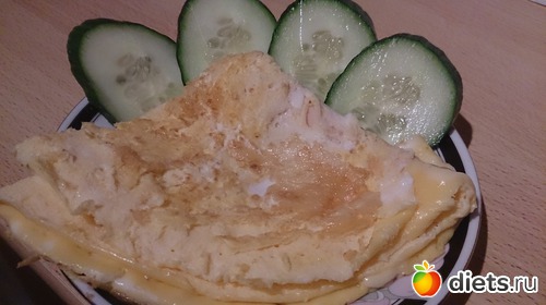 Ужин: два яйца, с колбасой, сыром, огурец