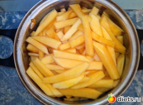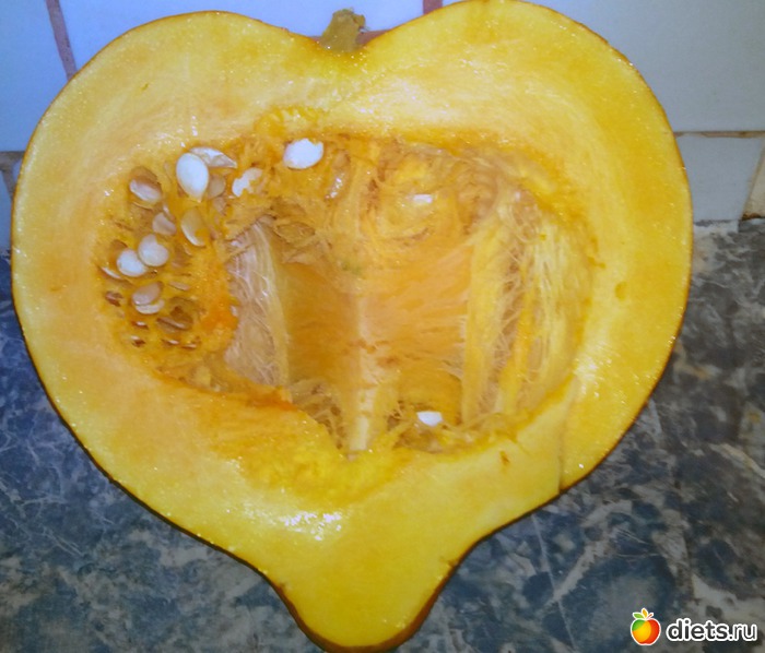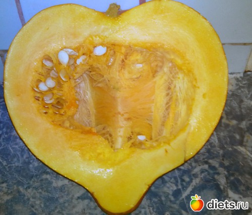 Решил попробовать запечь. Кстати, удивительное дело. У этой тыквы оказалась очень тонкая кожура. Я ее срезал обыкновенной овощечисткой, которой я, обычно, чищу огурцы.