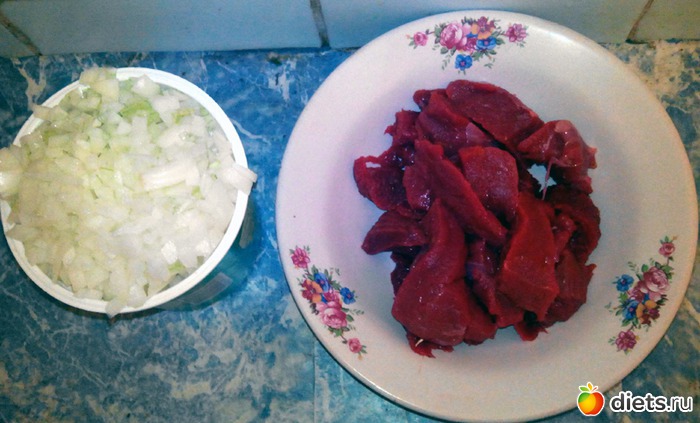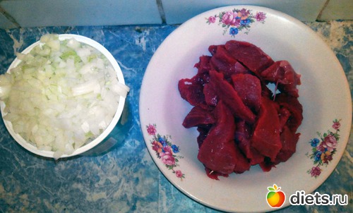 Начал с мяса и лука.