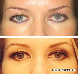 Для верхних век идеальны "гирьки" - упражнение выложено, можно делать. Оно дает отличные результаты и даже поднимает верхние веки при врожденном птозе. Посмотрите на фото: