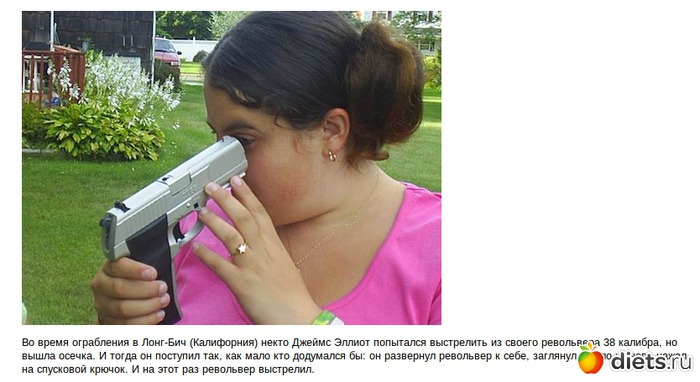4. Парень пытался сделать эффектное селфи, поднеся дуло пистолета к собственному виску. А потом запутался, и вместо того, чтобы нажать на кнопку телефона пальцем левой руки, он инстинктивно дёрнул пальцем правой руки.