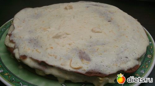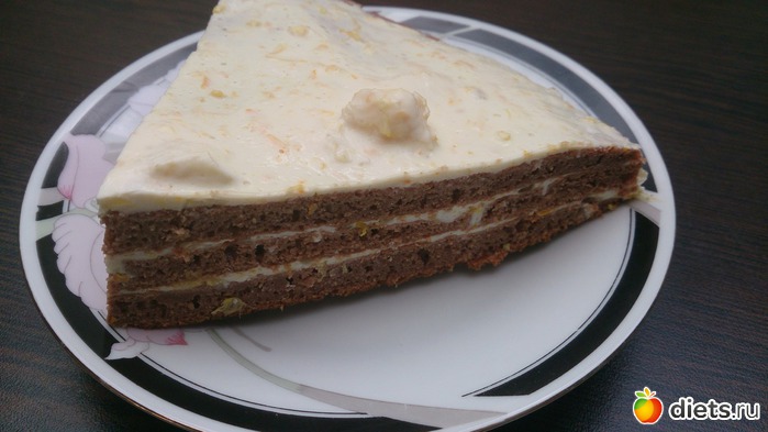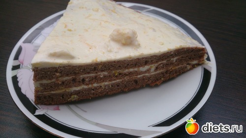 Использовала я два рецепта сразу, коржи взяла с одного, крем с другого + мои изменения. Сначала выложу оригиналы рецептов, а потом расскажу, что сделала я иначе и что бы сделала иначе в другой раз. По сути мне и даже соседке не ПП-шнице тортик понравился, кроме двух минусов: мало крема сделала (не рассчитала) и цедра апельсина дала неприятную горечь крему, в другой раз без нее или же вместо апельсина вполне можно использовать другие фрукты или ягоды.