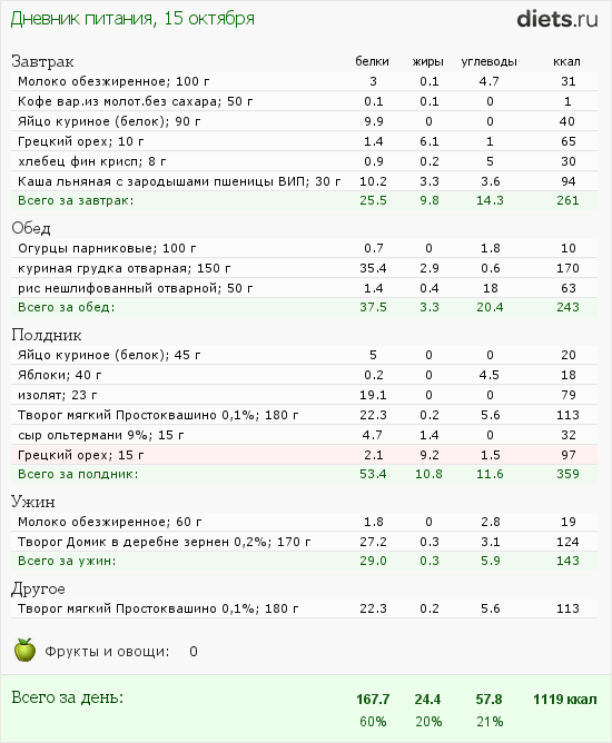 У меня если 60 г белка влазит в дневную калорийность, уже праздник.
