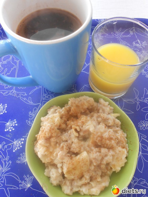 Завтрак - муж принес в постельку кашку, сок и кофе. Ангел