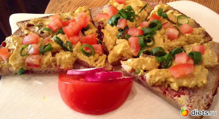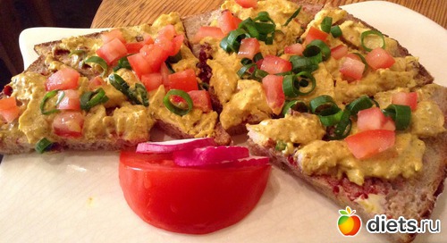 После моей работы с подружкой пошли в "Хлеб насущный", где слопали по тартинке (у меня с курицей карри и клюквой)