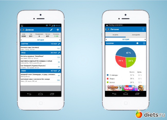 MyFitnessPal — самый простой и удобный счетчик калорий, который содержит в себе базу данных на более чем 3 миллиона наименований. Показывает содержание белков, жиров, углеводов, сахара, клетчатки и холестерина. Главная его фишка — сканер штрих-кодов для удобного поиска продуктов. Кроме того, MyFitnessPal имеет свой комплекс упражнений, а также считает число подходов и повторов.