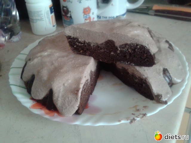 Подходит для диетчиц, которые не могут сразу и полностью отказаться от вредностей, типа меня...))) В этом тоже немало калорий получилось, но хоть без муки. Торт делала с фруктозой. Сыпучий сах. Зам. Только заказала еще...