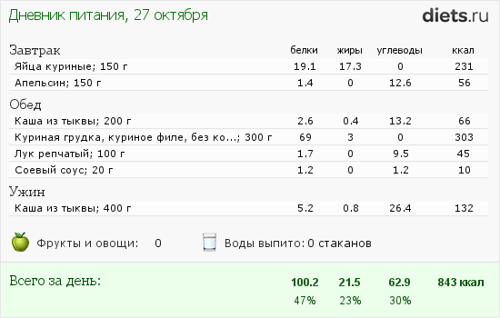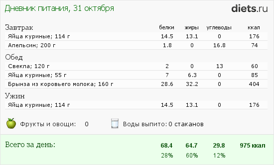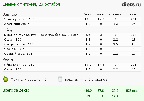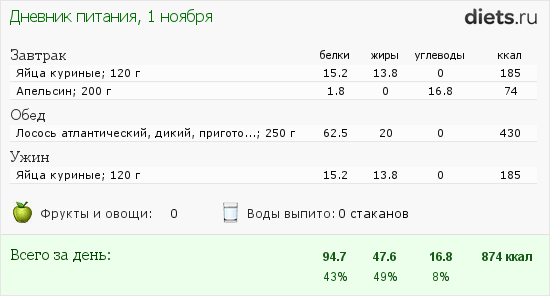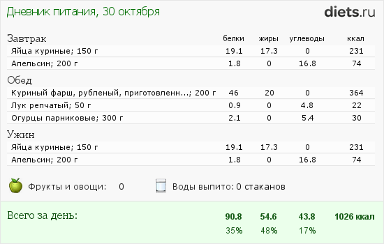 Сегодня с утра 2 яйца с апельсинкой, обед 400 грамм слив, вечер грамм 300 курицы.