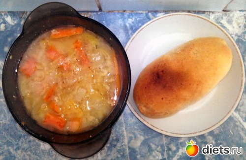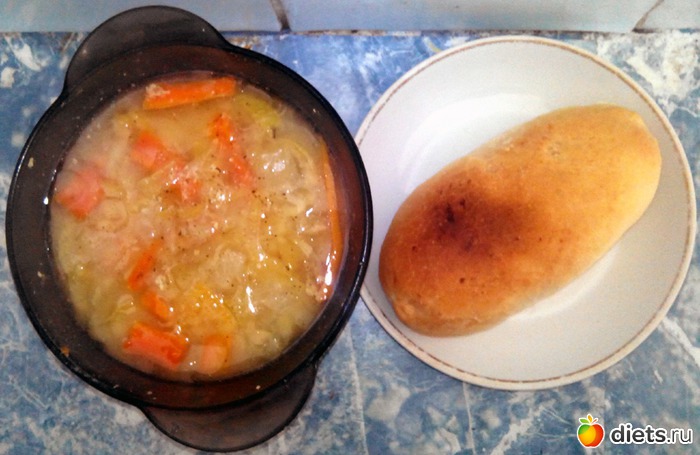 А! На картофельном отваре, который остался после варки картошки для пирогов, я вновь сварил овощной суп, который заправил колбасным сыром.