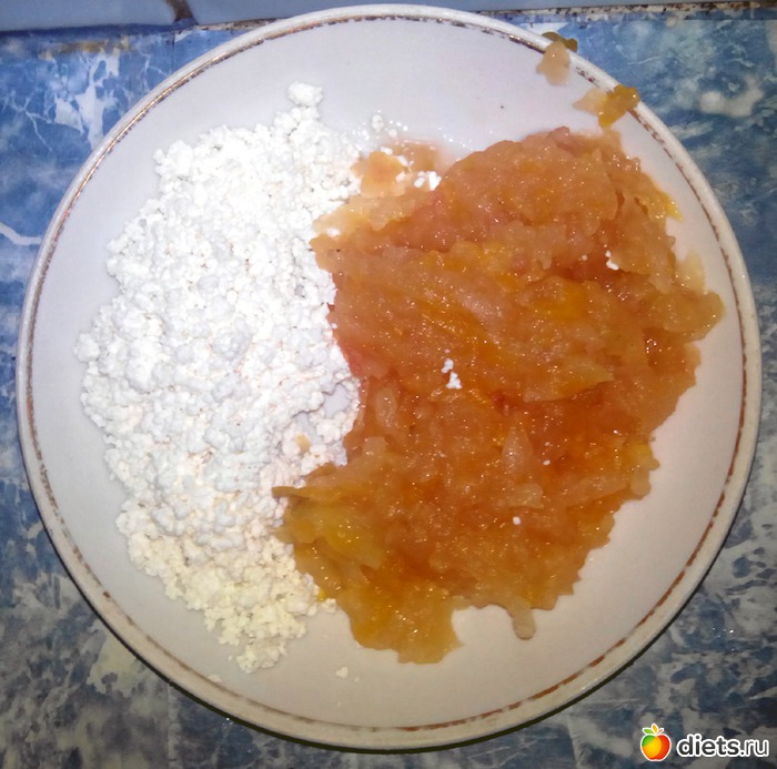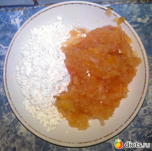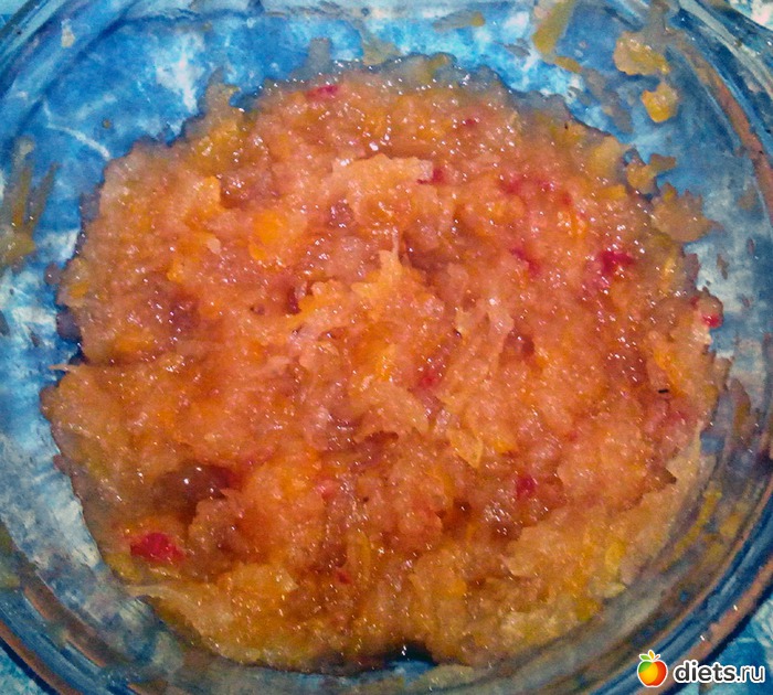 Для полдника - и не только на сегодня - сделал нечто вроде джема из тыквы и яблока. Прогрел в микроволновке и измельчил блендером.