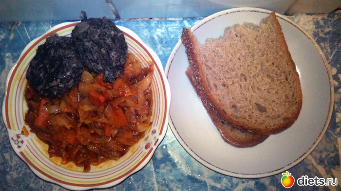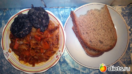 Тушеная капуста, плюс к тому нашел в холодильнике две паровых курино-грибных котлетки, которые на прошлой недели делал. Ниче так котлетки оказались!