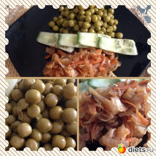 Перекус: остатки капусты с обеда (2ст.л.) горошек (2ст.л.) пару ломтиков огурца 14:30