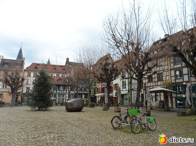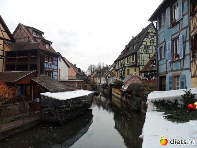 Так как мы были на машине, то решили рвануть в городок по соседству - Колмар (Colmar). Фотографии этого города я много раз видела в интернете и раз уж мы оказались всего в 80км от него - грех не заехать. Я была немного разочарована, так как летом это цветущий яркий многолюдный город. Безумно красивый. Мы же застали дождь, холод и уменьшенную копию Страсбурга со скромным Рождественским базаром. Всё равно, прогулка доставила мне огромное удовольствием. Но если вы едете в Страсбург зимой и не на машине, то, наверно, не стоит тратить время на посещение Кольмара. Только если у вас несколько дней в запасе. Если же вы окажитесь в этих краях летом - то Кольмар обязателен к посещению.