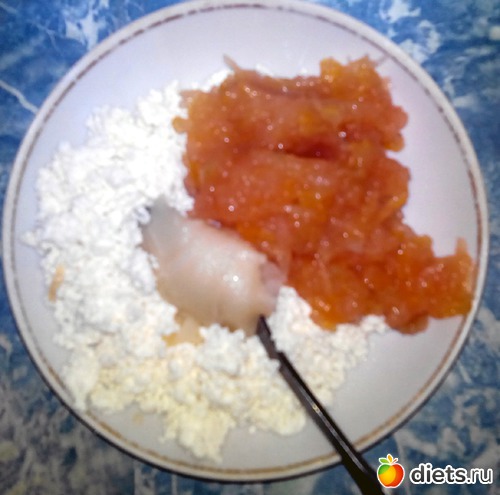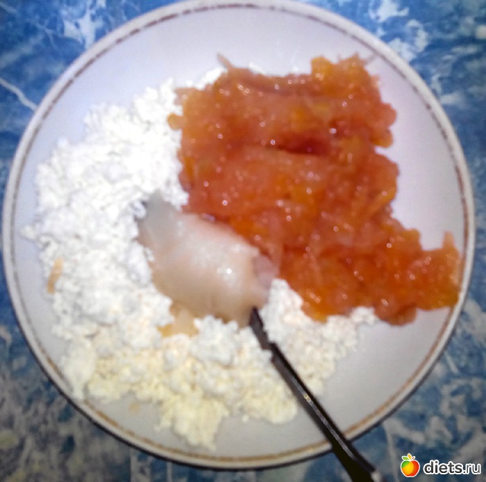 Творог, тыквенно-яблочный джем и ложка меда. Получилось обалденно вкусно.