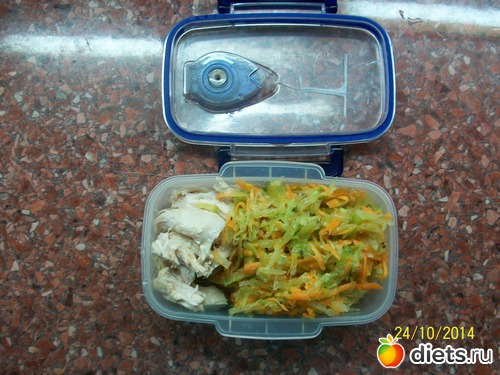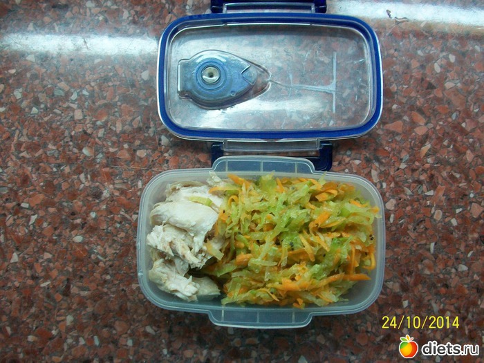 был мой салатик, с добавлением оливкового масла и отварная куриная грудка