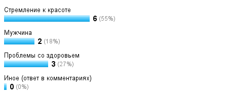 Радует, что большинство всё таки худеют для себя, чтобы быть красивее и здоровее