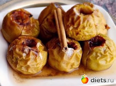 Разогреть духовку до 180 градусов. Удалить центр яблок и выложить их на противень для выпечки, выложенный фольгой. Смешать мед, орехи, корицу и начинить им яблоки, заполняя отверстие. Поставить в духовку на полчаса, и затем остудить в течение 10 минут. Подавать при комнатной температуре.