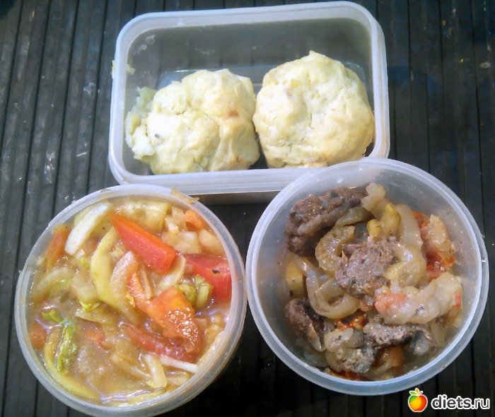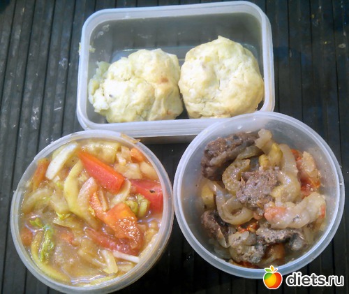Морковка, сельдерей, лук и помидорка. Немного грудки, что брал с собой, но так и не съел.