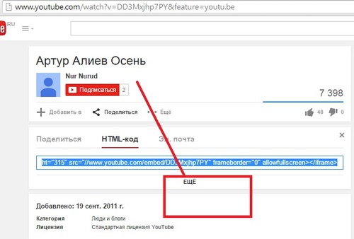 Смотрите. http://www.youtube.com/watch?v=DD3Mxjhp7PY&feature=youtu.be Вот он адрес ролика, я его выделила жирным шрифтом. Вот его и надо указывать
