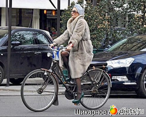 Дама в шубе, на шпильках и верхом на велике - наш человек!