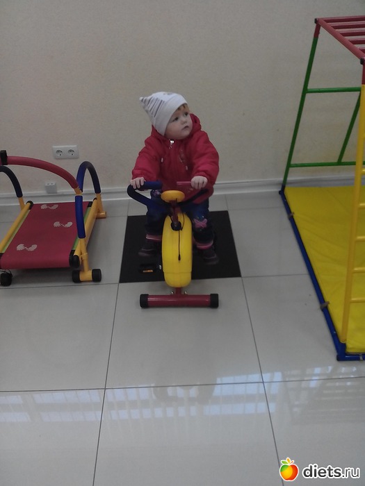 Потом прививка, полчаса тусили и играли с игрушками в кабинете, измерение температуры, осмотр и нас наконец-то таки отпустили домой, ноооооо в регистратуре нас ждала засада - велотренажер